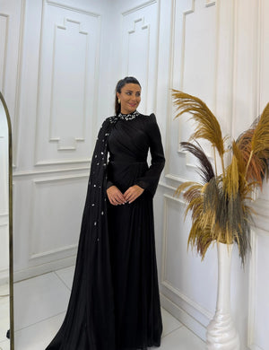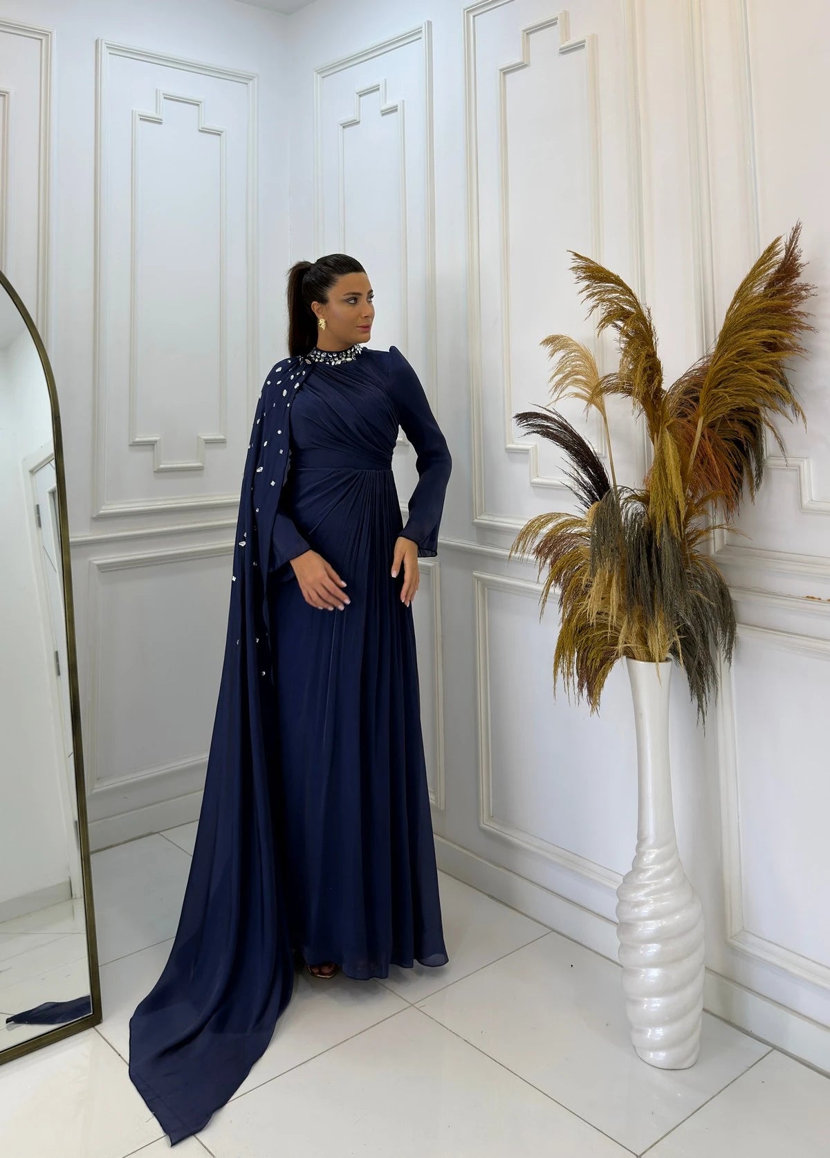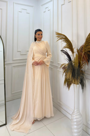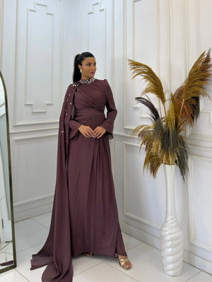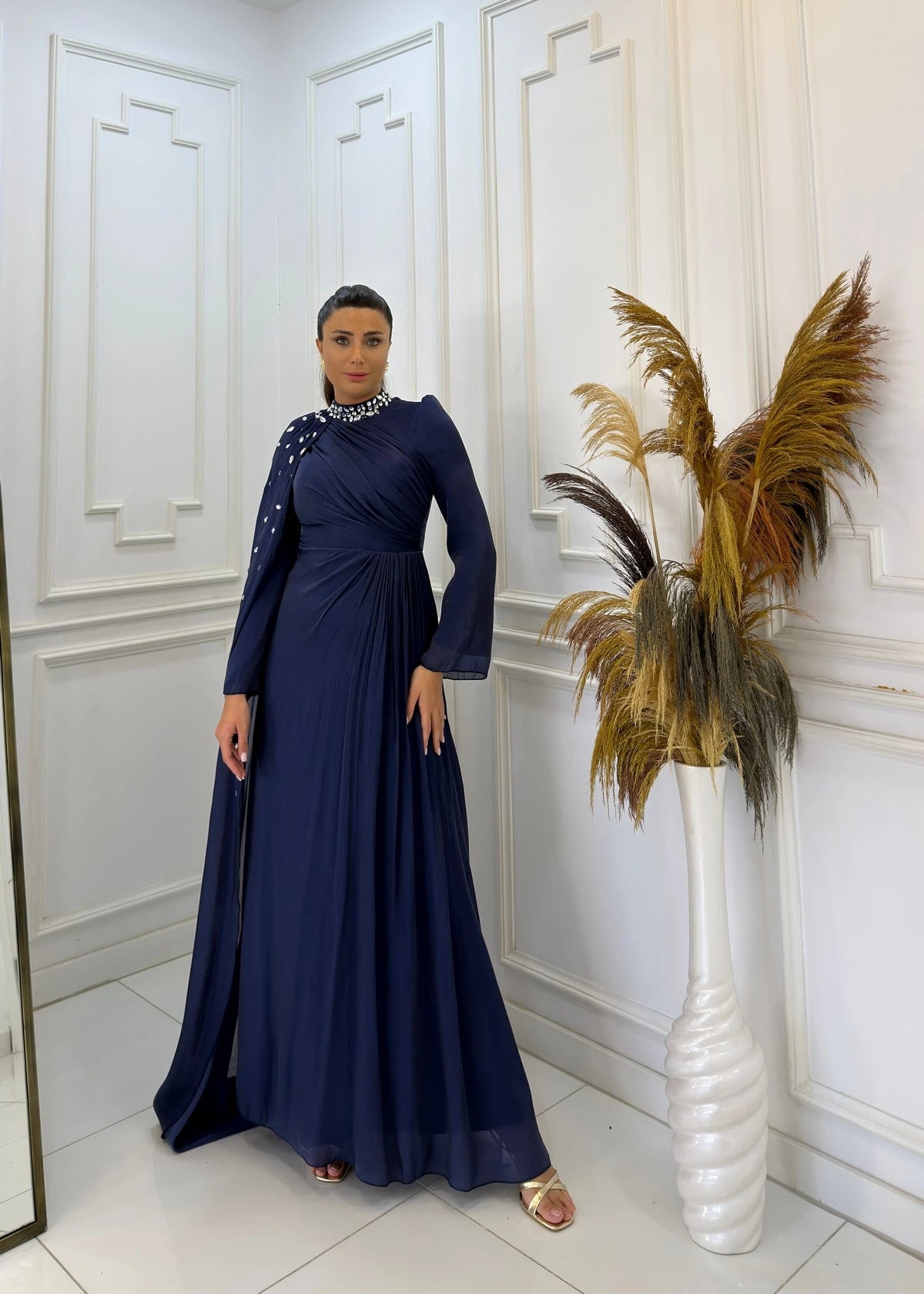 Abiye Organze şifon kumaştır ön kısmında drape detayı bulunmaktadır.