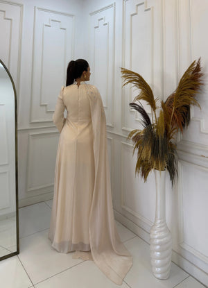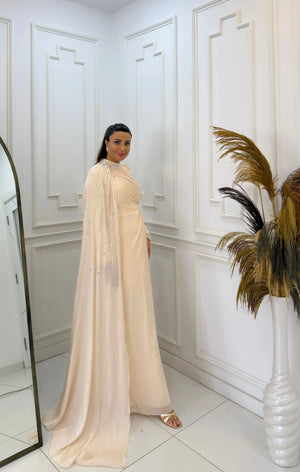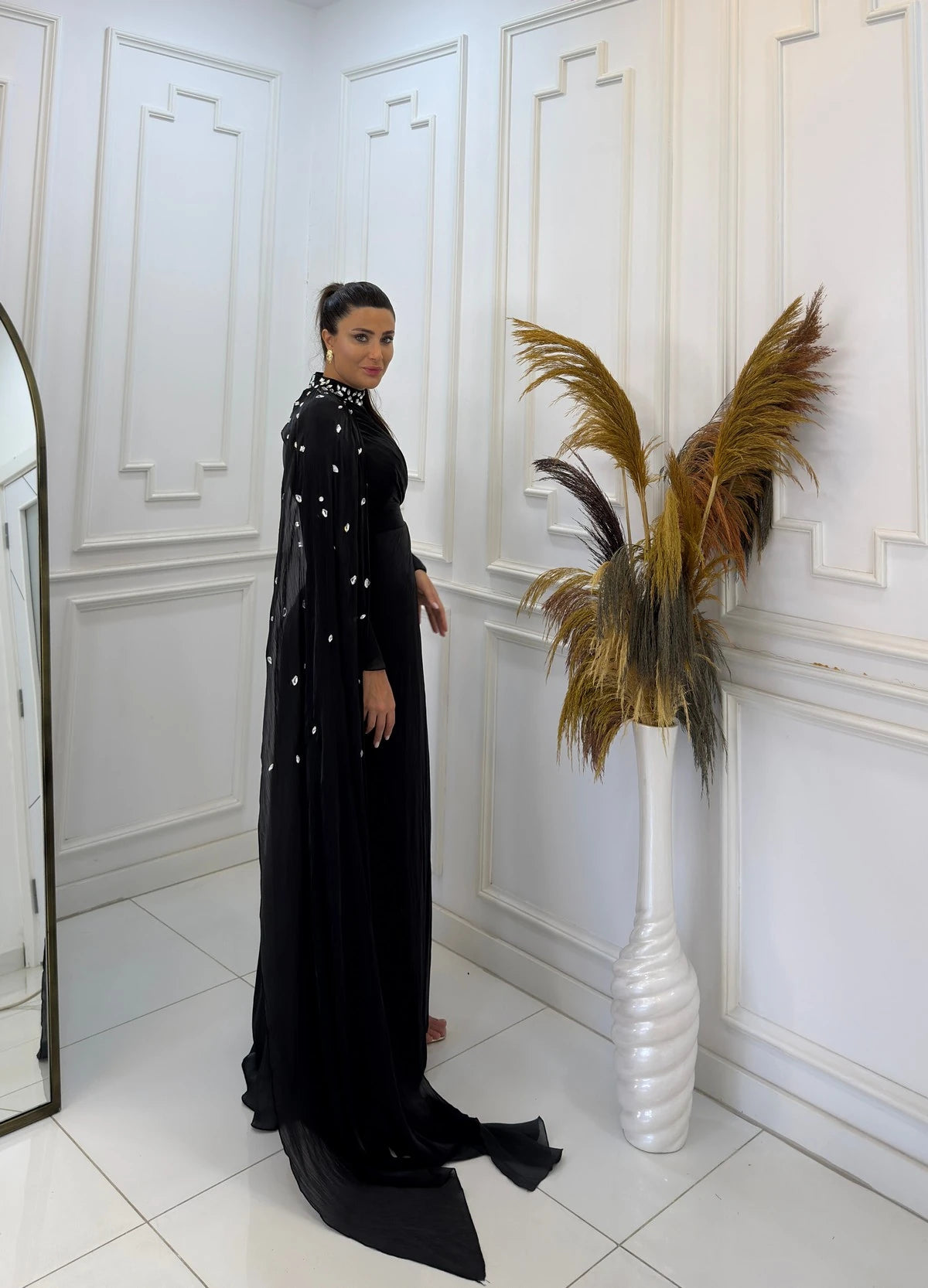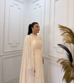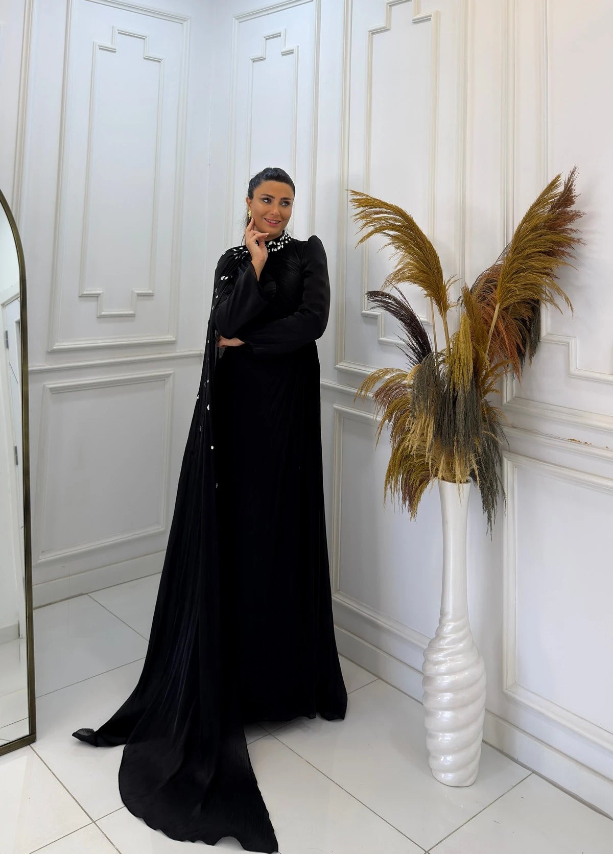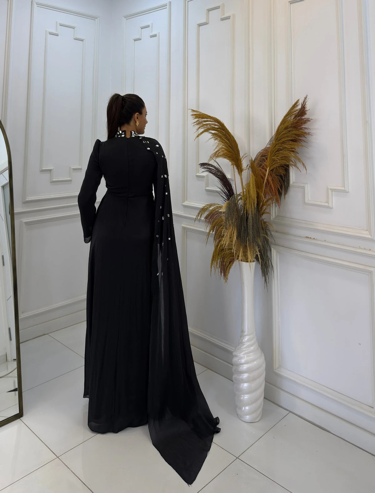 Abiye Organze şifon kumaştır ön kısmında drape detayı bulunmaktadır.