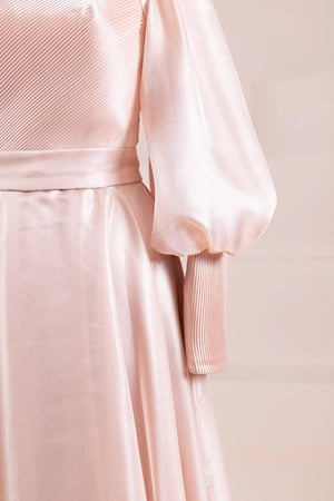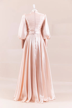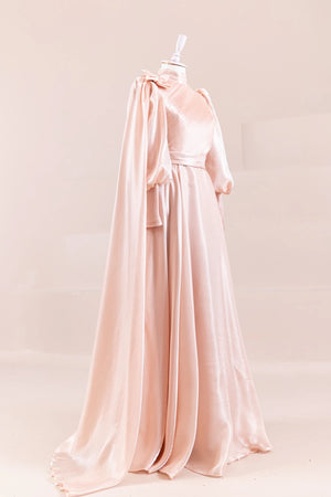 Abiyemizin Üst kısmı ve manşetleri piliselidir etek tam dairedir sağ omuzunda pelerin detayı bulunmaktadır sök tak incili çiçek aksesuar bulunmaktadır arka sırt kısmı gizli fermuarlıdır iç kısmı komple astarlıdır.