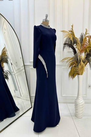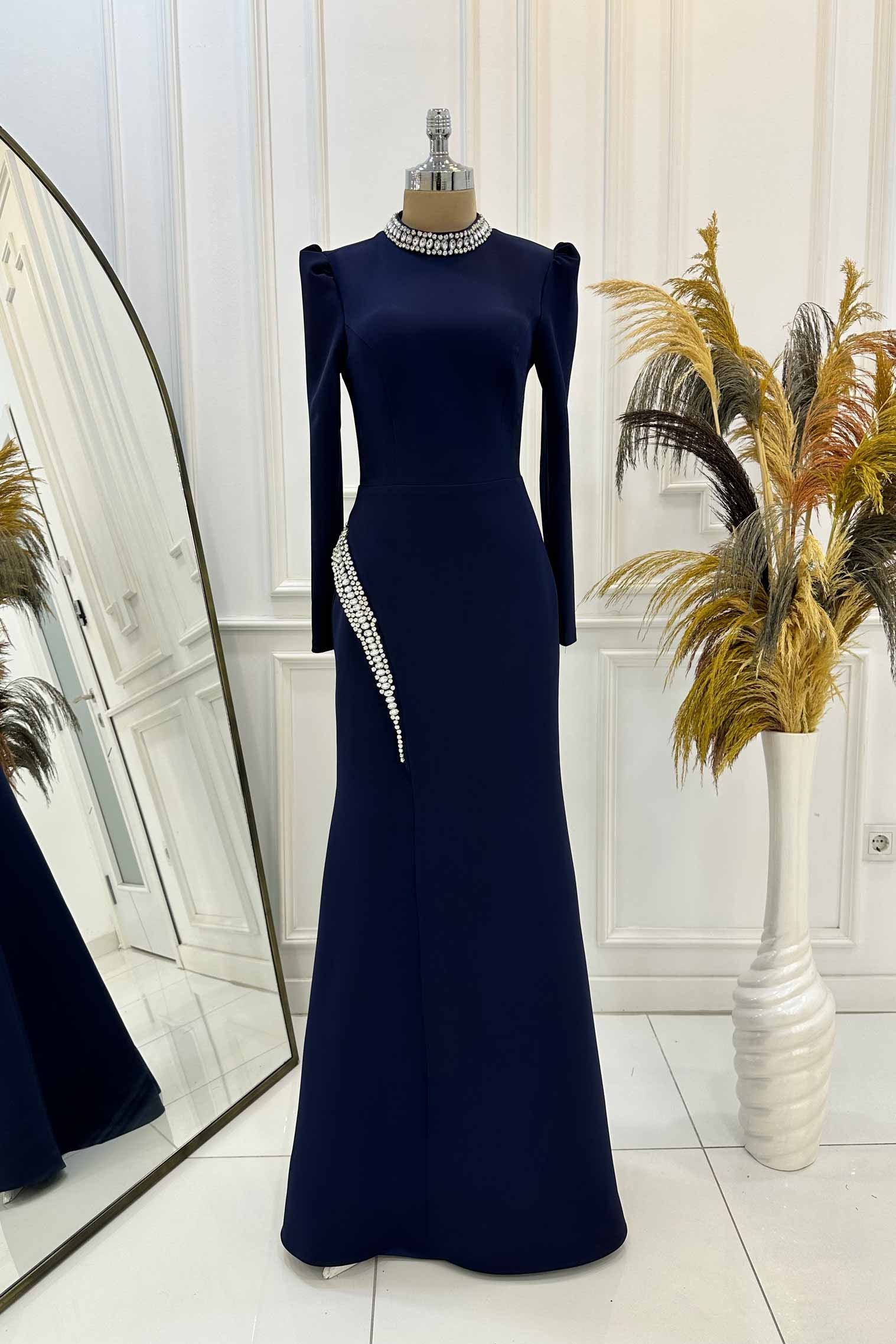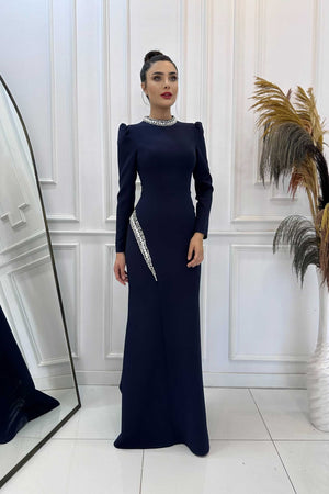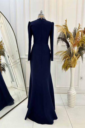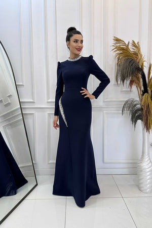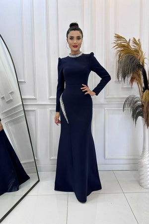 yaka ve bel kısmında kristal taş detayıyla süslenmiştir