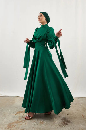 Gözde Düğmeli Zümrüt Tesettür Abiye