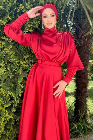 19768 Kırmızı Mihra Tesettür Abiye