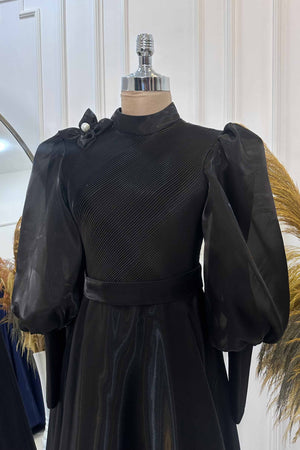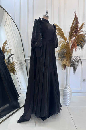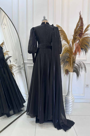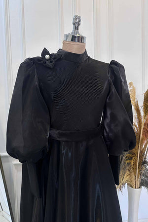 Abiyemizin Üst kısmı ve manşetleri piliselidir etek tam dairedir sağ omuzunda pelerin detayı bulunmaktadır sök tak incili çiçek aksesuar bulunmaktadır arka sırt kısmı gizli fermuarlıdır iç kısmı komple astarlıdır.