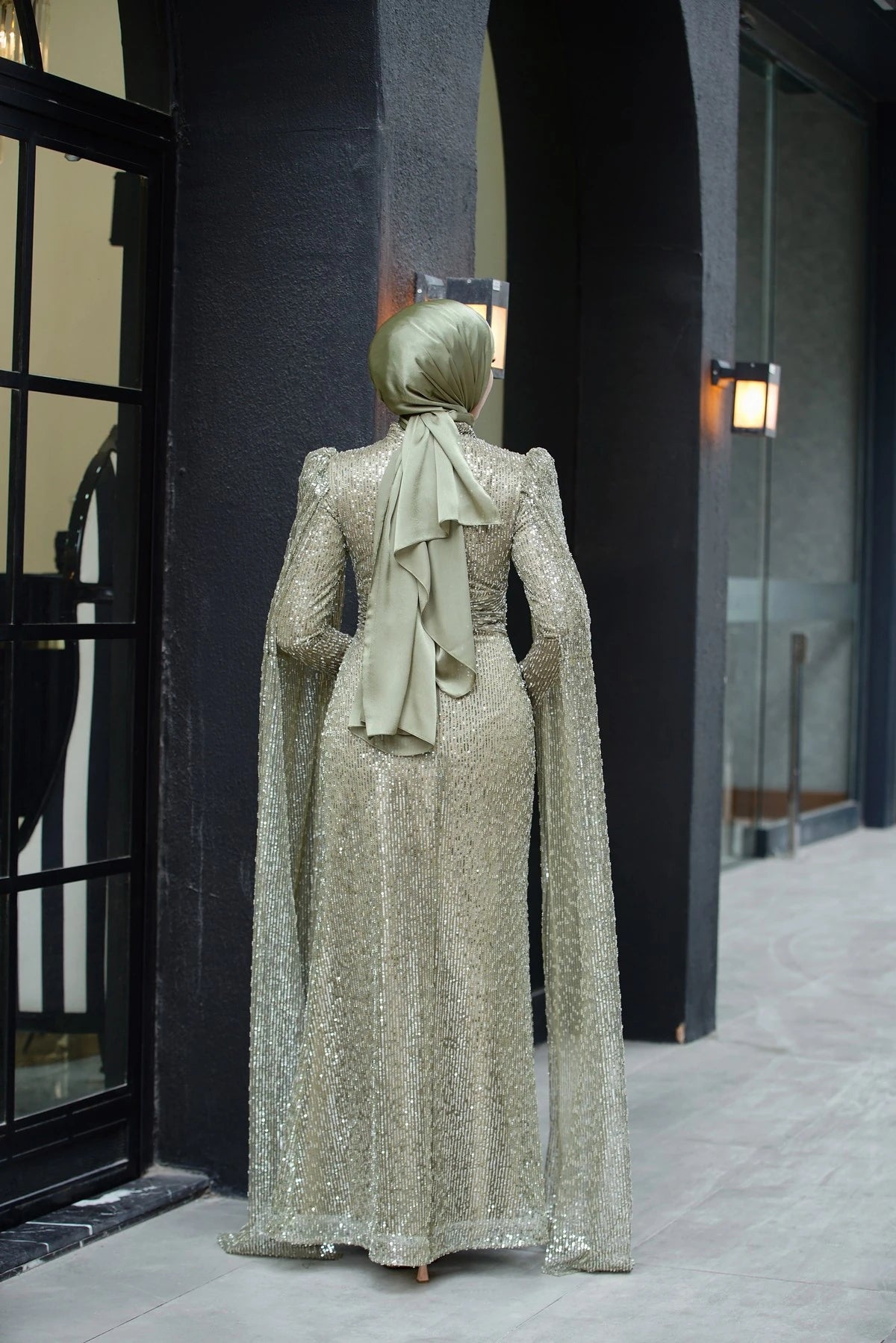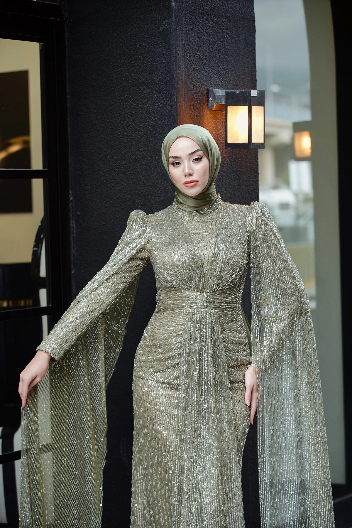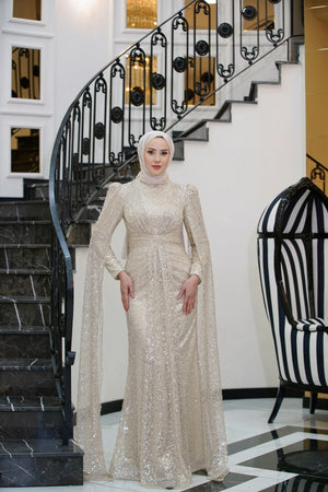 Full boncuk kaplama olan özel tasarım abiyemiz tam kalıptır omuza monteli pelerin detayı bulunmaktadır içi komple astarlıdır arka sırt kısmı fermuarlıdır ürün boyu 155 - 160 cm dir.