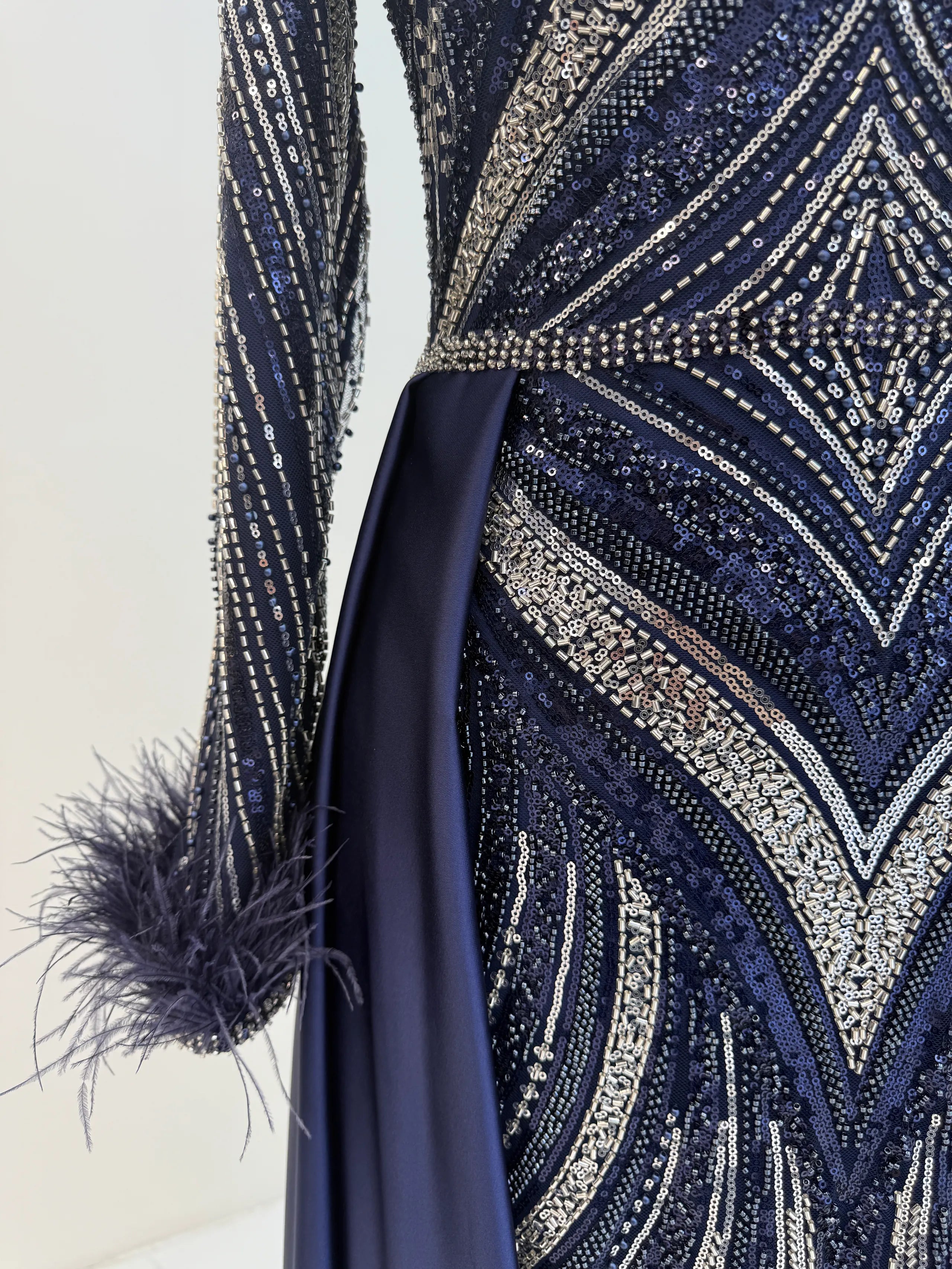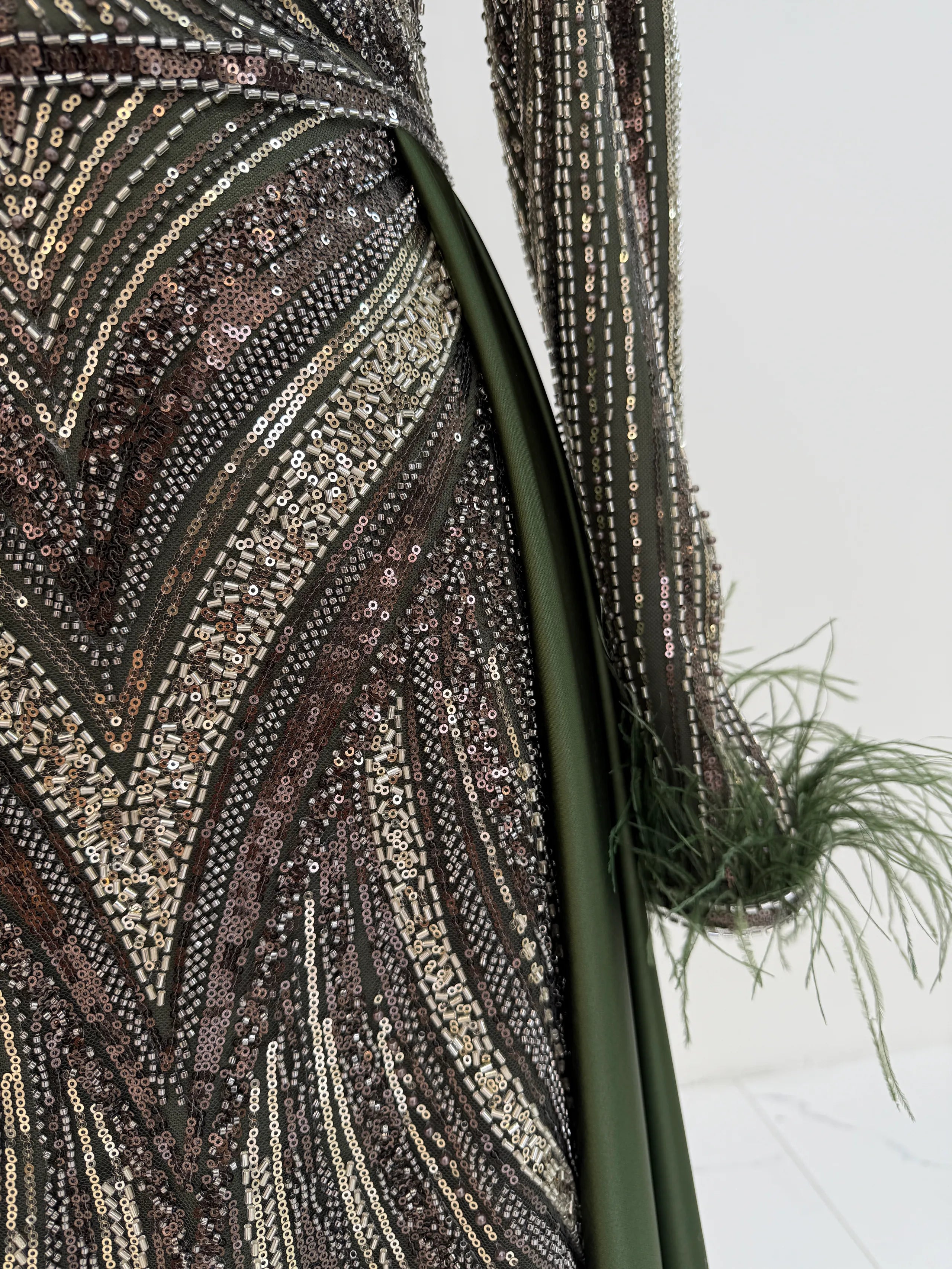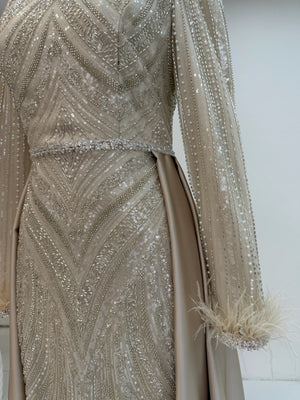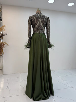 Abiyenin kol uç kısımlarında tüy detayı bulunur arka sırt kısmında gizli fermuar bulunmaktadır