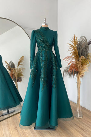 35794 Sude Kabarık Abiye Zümrüt