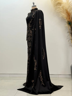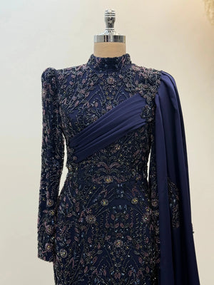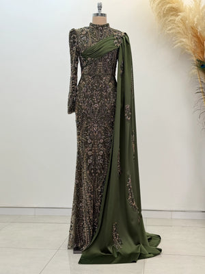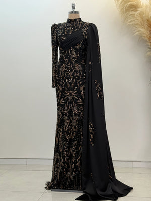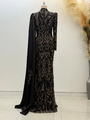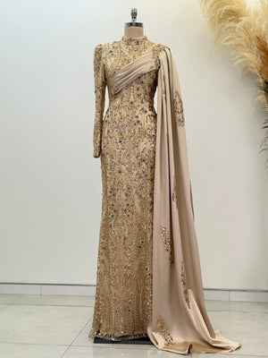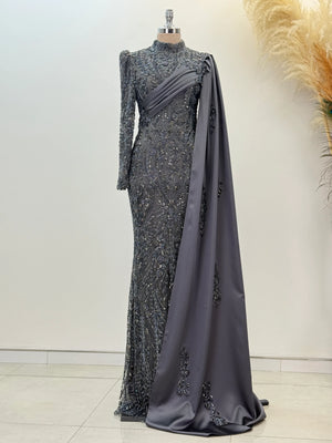 tamamı cam boncuk işlemeli zenna abiye modelimizin belinde tüylü kuyruk detay olup astarlıdır ve arkadan gizli fermuarlıdır.
