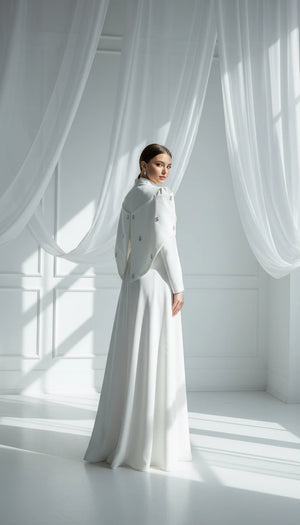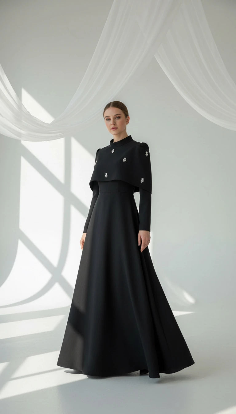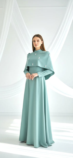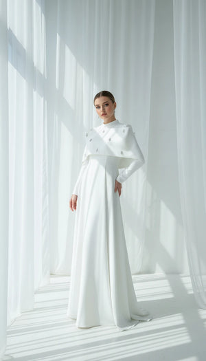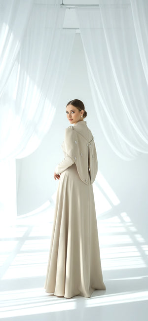 Abiyenin etek kısmı çan modelidir arka sırt kısmında gizli fermuar bulunmaktadır