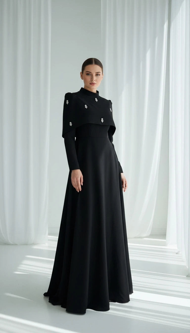 Abiyemiz Birinci sınıf krep kumaştır tam kalıp bir modeldir üst bölümünde taş detayı bulunmaktadır