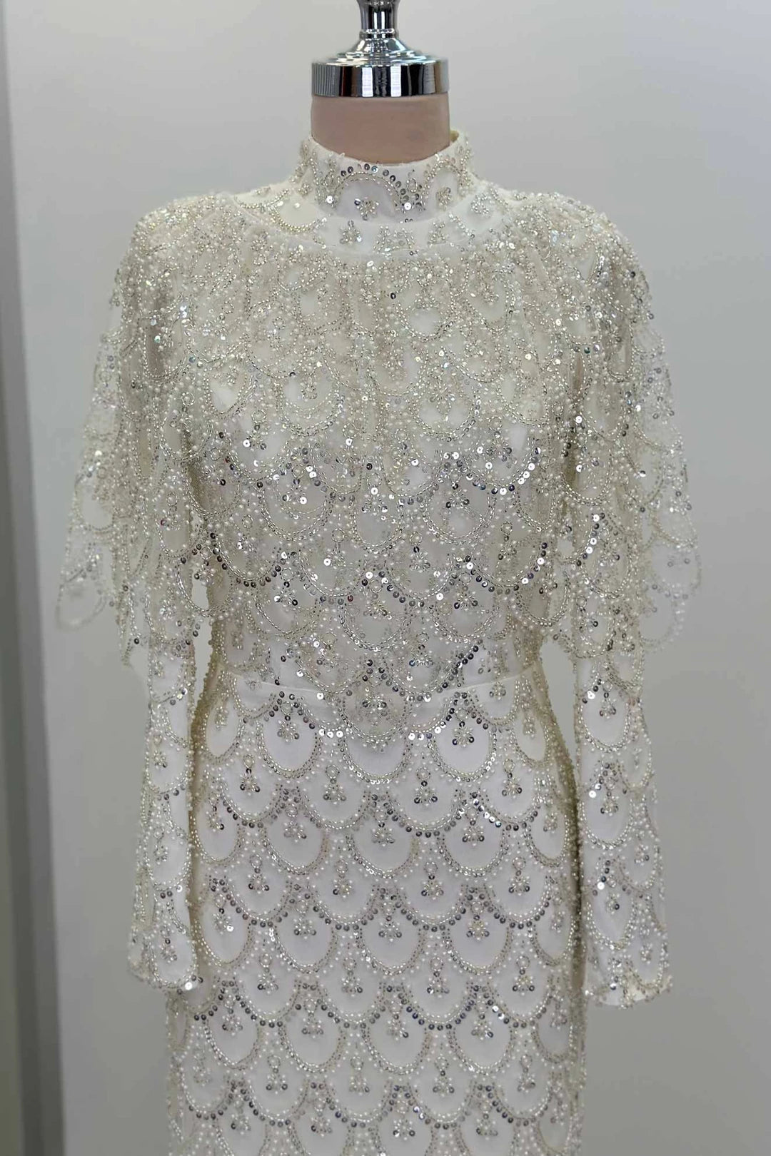 Full boncuk kaplama olan özel tasarım abiyemiz tam kalıptır üst kısmındaki pelerini seyyardır sök tak yapılabilinir içi komple astarlıdır arka sırt kısmı fermuarlıdır ürün boyu 155 - 160 cm dir