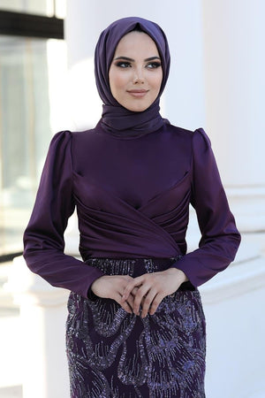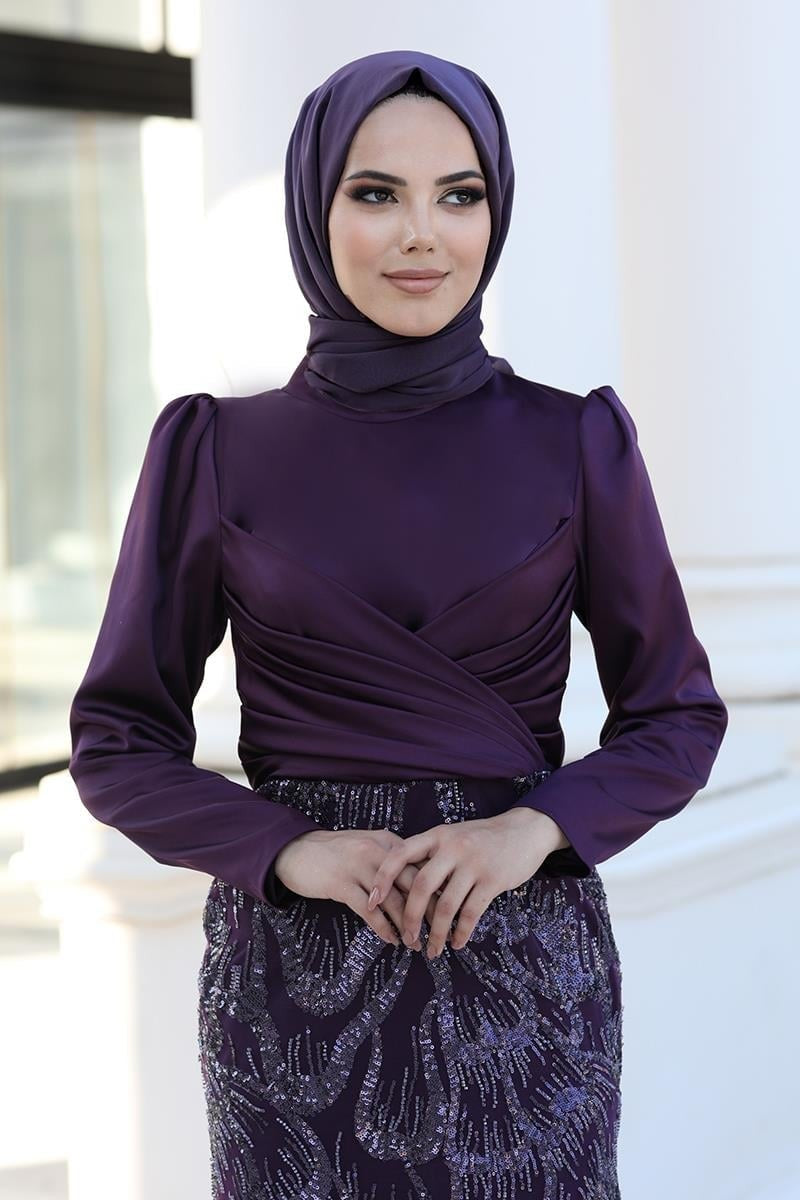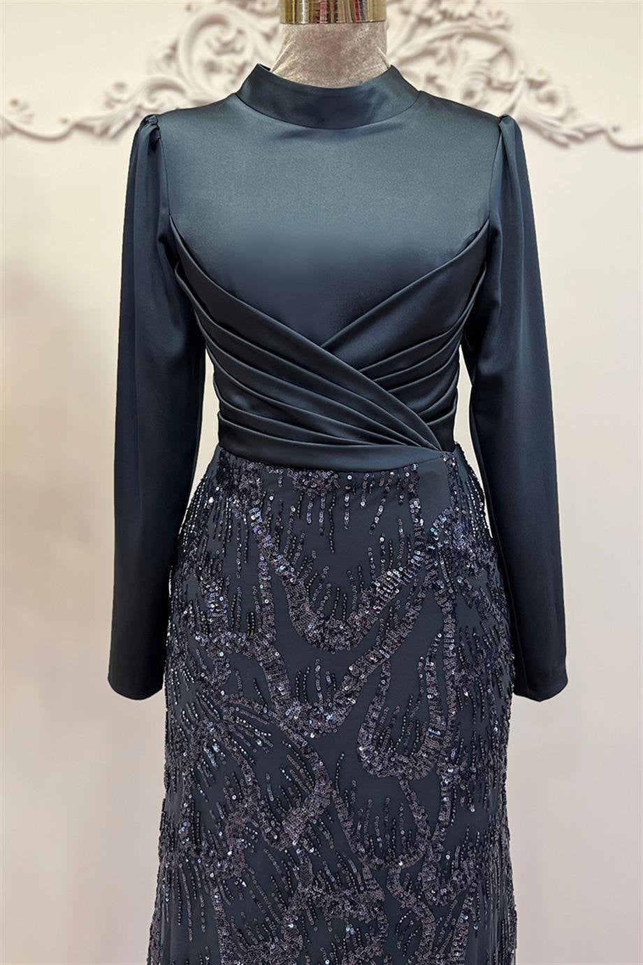 bel kısmında drape detayı bulunmaktadır arka sırt kısmında gizli fermuar vardır